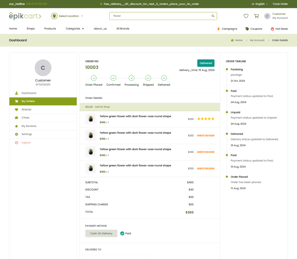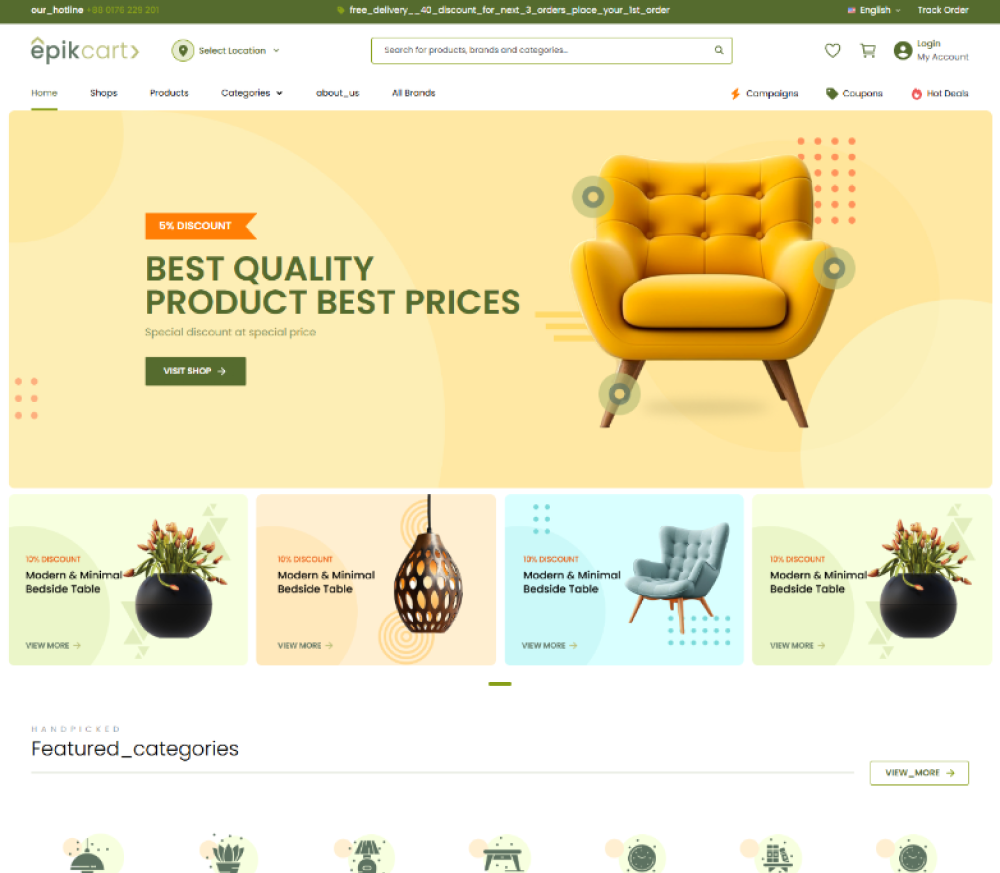 Epikcart is a feature-rich, scalable e-commerce platform tailored for large businesses. It features dynamic product filtering, multi-language support with RTL, advanced inventory management, order tracking, and refund systems, offering a comprehensive solution for multi-vendor operations.